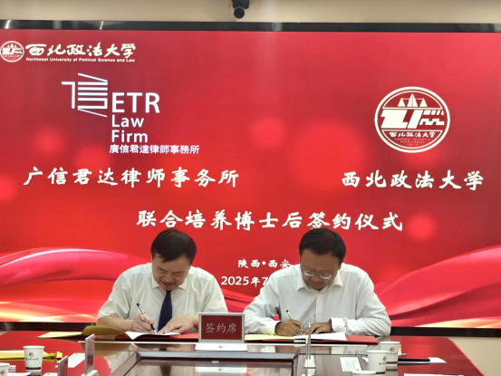 7月27日下午,公司与广东广信君达律师事务所联合培养低空经济法律博士后签约仪式在长安校区举行。副董事长马朝琦,广东广信君达律师事务所战略委副主任、博士后创新实践基地学术委员会主任慕亚平,国家级涉外法治研究培育基地执行主任王瀚出席。党委教师工作部部长、人事处处长董玮主持签约仪式。