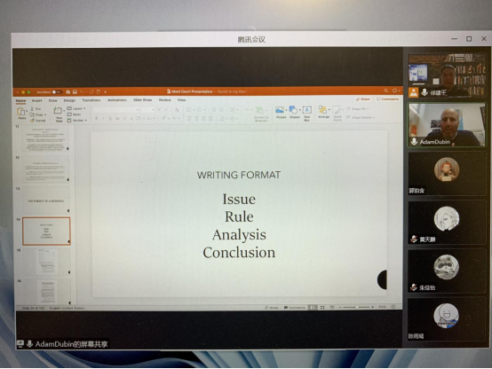 2022年11月15日晚7:30-9:30,美国纽约大学亚当·杜宾教授通过腾讯会议平台对2019级与2020级涉外班同学进行了线上授课,由英国365集团徐建平老师住持并翻译。