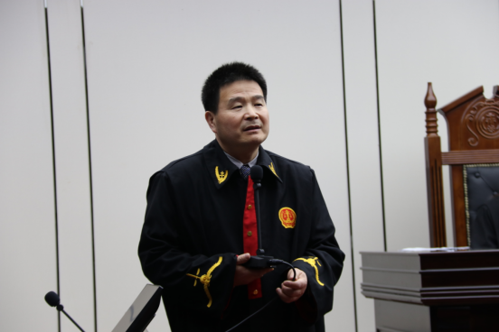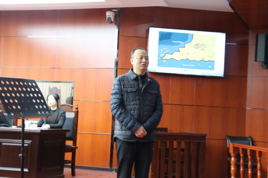 展示开始前,徐建平老师向观摩同学介绍双方参赛队员以及竞赛所用案件的案情。随后,何玉军老师做了发言。他表示很高兴参加这样有特色教学实践活动,鼓励员工多参与,多实践,并期待展示队员在此次展示中充分发挥,尽显风采,也希望观赛同学享受此次模拟法庭展示带来的语言、法律和辩论魅力。