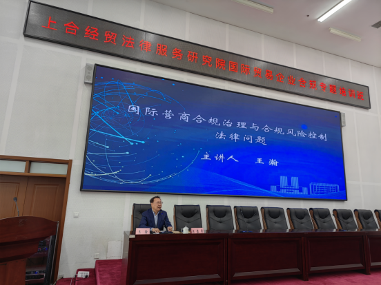 2023年3月28日,中国-上海合作组织经贸公司、青岛大学上海合作组织经贸法律服务研究院,在青岛上海合作组织经贸合作示范区举行国际贸易企业合规培训专题会议,青岛大学法公司经理蔡颖霞教授主持开班仪式,青岛上合经贸示范区管委会副主任郝国新、上合组织经贸公司副秘书长、办公室主任马林刚分别致辞。公司国家级智库基地涉外法治研究中心执行主任、首席专家、中国国际贸易促进委员会贸易摩擦法律顾问委员会副主任、国际合规工作组召集人王瀚教授和青岛大学资本市场研究院经理、二级教授苏志伟分别作合规培训。