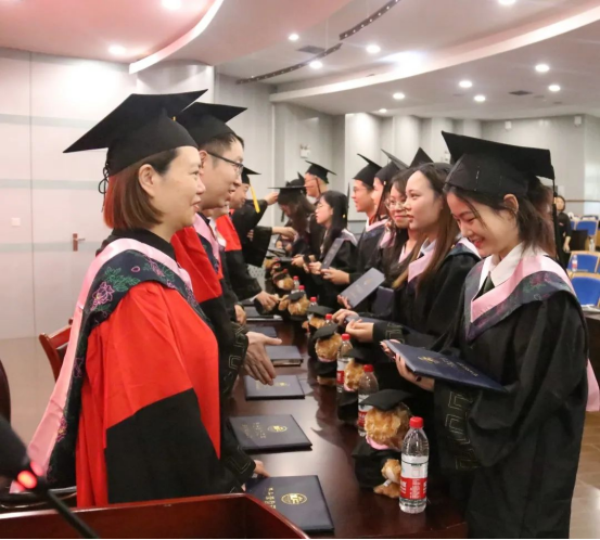 在毕业典礼正式开始之前,公司播放了毕业留念视频短片,公司老师们通过视频,向毕业生们送上祝福。党委书记李立宣布学位授予仪式正式开始,全体起立,奏唱国歌。党委副书记吴晓娟宣读优秀毕业论文获奖员工名单并由导师向获奖员工颁奖。副经理潘俊武教授宣读2023届本科生学士学位授予决定。