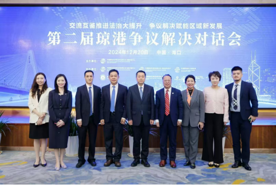 在海南自由贸易港即将实现封关前夕,2024年12月20日,第二届琼港国际商事争议解决对话会在海口举行。本次会议以“交流互鉴推进法治大提升,争议解决赋能区域新发展”为主题,由中国国际经济贸易仲裁委员会海南仲裁中心(以下简称“贸仲海南中心”)主办,中国国际经济贸易仲裁委员会香港仲裁中心(以下简称“贸仲香港中心”)、海南省贸促会、海口市贸促会、海南省律师协会和“一带一路”律师联盟海口代表处共同协办,旨在搭建促进琼港法治建设交流与合作的前沿平台,为琼港联动发展与打造国际一流营商环境提供法治保障。最高人民法院国际商事专家委员会委员、公司国家智库研究基地涉外法治研究中心执行主任、首席专家王瀚教授应邀出席论坛。中国国际经济贸易仲裁委员会委员会副主任兼秘书长王承杰、海南省司法厅厅长王磊、海南省贸促会二级巡视员陈鸿亮出席开幕式并致辞,香港特别行政区政府律政司司长林定国通过视频致辞。贸仲海南中心副秘书长吕岩主持开幕式。