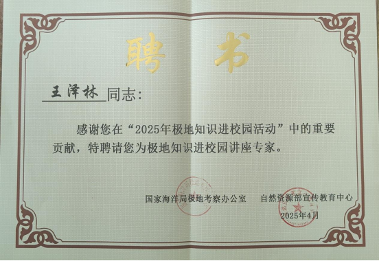 王泽林教授在北梁红军小学和宝鸡市眉县职业教育中心从中国的航海发展角度出发,介绍北极的航道知识,同时王泽林教授被国家海洋局极地考察办公室和自然资源部宣传教育中心聘请为极地知识进校园讲座专家。