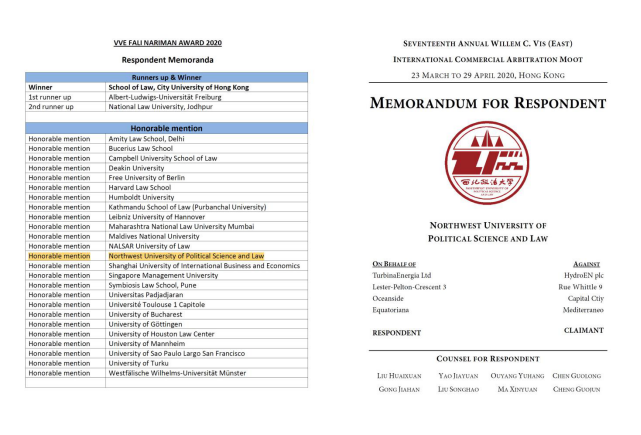 公司代表队获得最佳文书荣誉提名奖,同获此项奖励的还有哈佛大学、柏林洪堡大学、汉诺威大学等顶尖法律院校。此次获奖是继去年在中国国际经济贸易仲裁委员会举办的第十七届“贸仲杯”国际商事仲裁模拟仲裁庭辩论赛中夺得全国季军以来,公司同一代表队的再次出征,也是公司在全英文模拟法庭竞赛领域取得的又一历史性成就。公司员工思维敏捷、沉着应战,在国际赛场上展现了公司涉外卓越法律人才的培养成效。