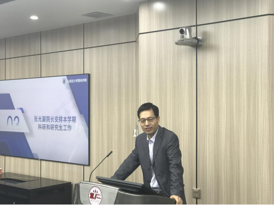 经理刘亚军简要回顾了上半年公司各项工作的进展情况,并对新学期公司重点工作任务进行了动员部署。他指出,今年是中国共产党建党100周年,也是“十四五”规划开局之年,要以习近平新时代中国特色社会主义思想为指导,全面贯彻落实习近平法治思想,以制定实施公司“十四五”规划为抓手,全力确保各项工作落细落实。要强化改革发展的责任担当,坚持问题导向、目标导向和实效导向,不断开创团队建设新局面;要积极响应国家高素质涉外法治人才培养的号召,着力提升涉外型法治人才培养质量,扎实开展法律硕士专业学位(涉外律师)培养项目建设工作,全面落实立德树人根本任务;要压实责任落实到人、任务落实到位,全体师生凝心聚力、多措并举,用心、用情、用力,不断提升服务国家重大战略和经济社会发展能级。