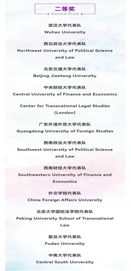由中国国际经济贸易仲裁委员会(简称“贸仲委”,CIETAC)主办的第十九届“贸仲杯”国际商事仲裁模拟仲裁庭辩论赛于2021年11月28日至12月3日以线上方式举行。公司代表队从全国七十五支高校代表队中脱颖而出,以第十名的总成绩荣获全国二等奖。
