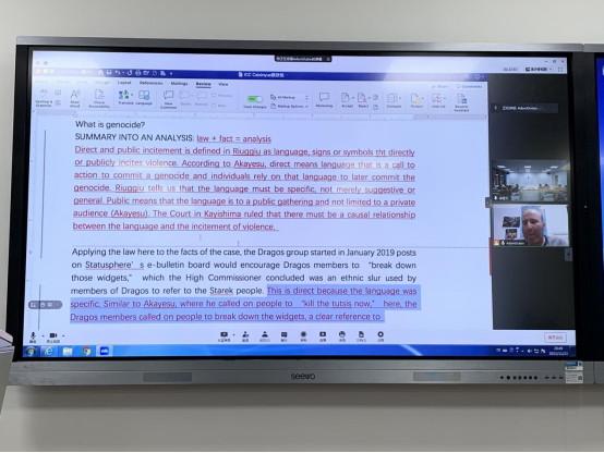 通过本次授课,同学们了解了案例法对国际刑事法院审理案件的价值,并从教授个案分析和教授中学习到如何将先前案例所阐释的法律原则和规则运用到模拟案例的诉状写作中。并对英文Jurisprudence(案例法)有了清晰的理解。